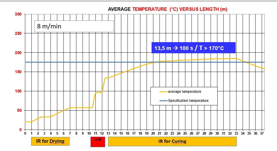 Temperature measurements along the drying/curing arch